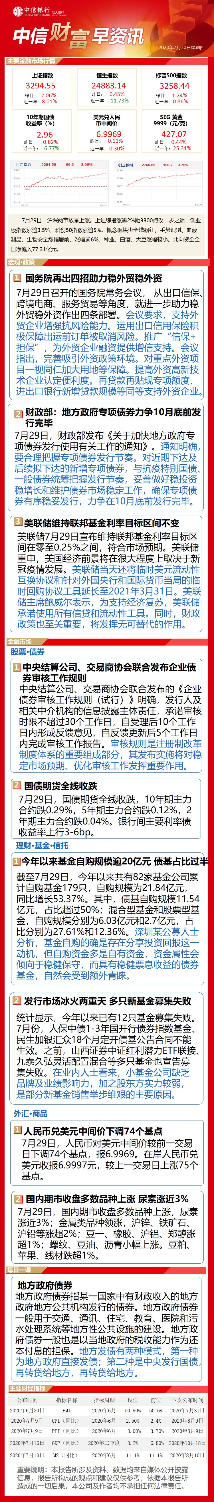 中信财富早资讯7月30日