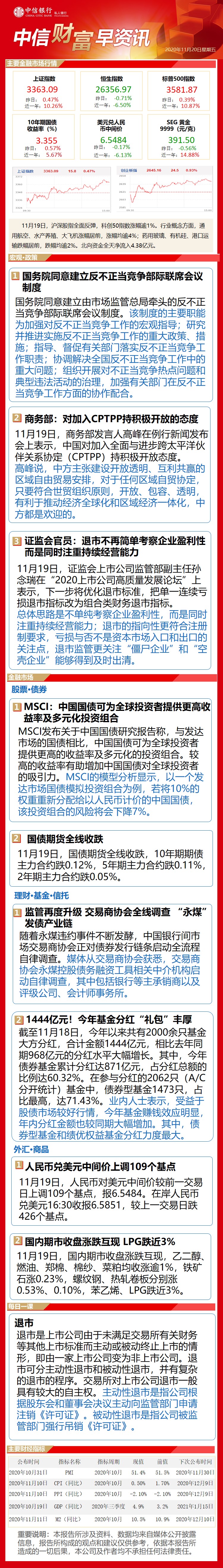 中信财富早资讯11月20日