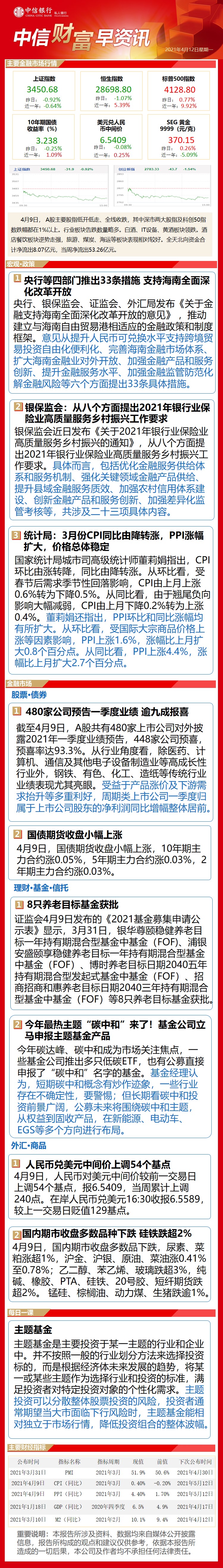 中信财富早资讯4月12日